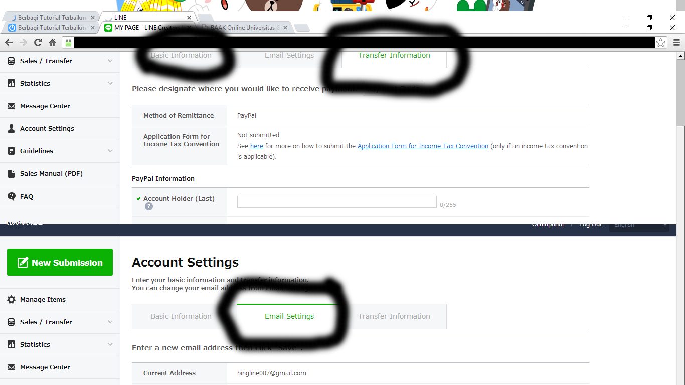 7. Jika sudah semua kamu isi lalu pilih tab New Submission untuk upload stiker LINE kamu.