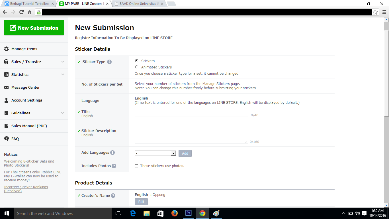 Sekian tutorial dari saya untuk upload stiker di LINE Creator Semoga bermanfaat.