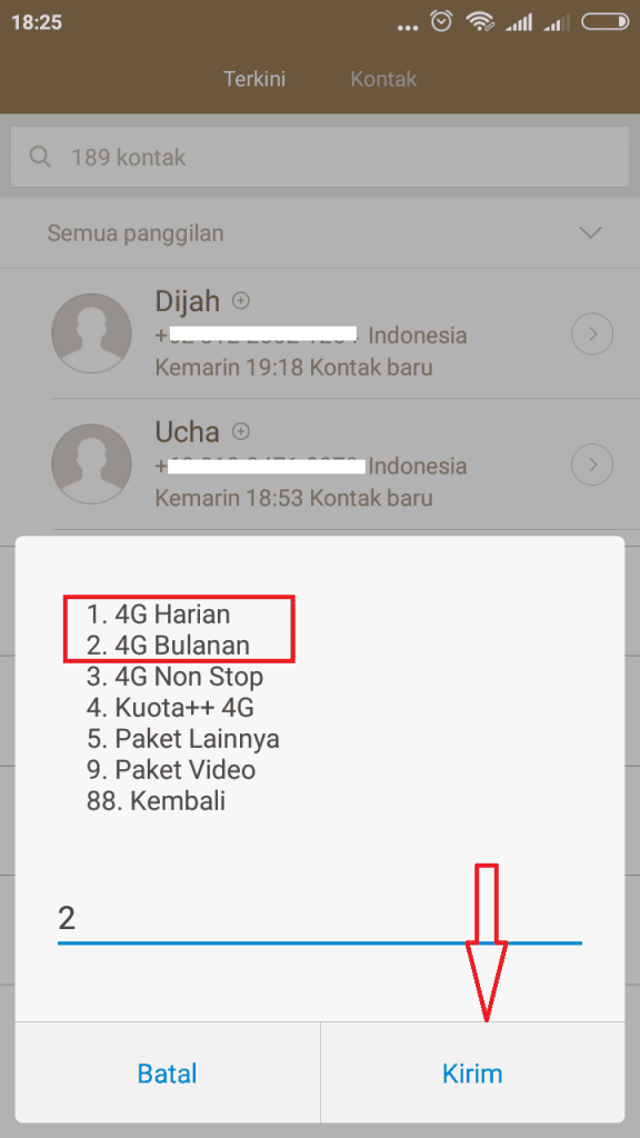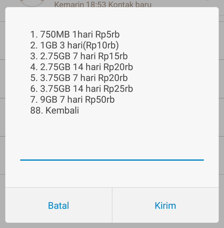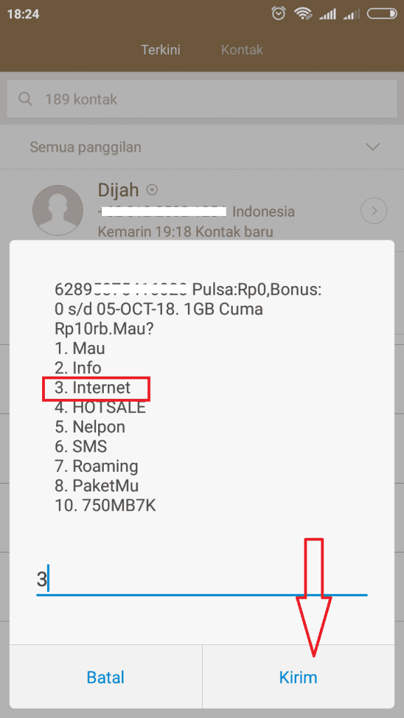 2. Akan muncul beberapa pilihan, ketik angka 3 untuk memilih paket internet.