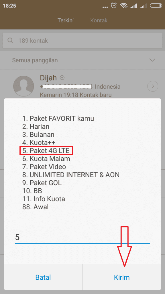 3. Kemudian ketik angka 5 untuk paket 4G LTE.