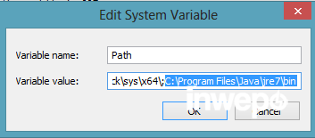 5. Kemudian tambahkan lokasi JRE kamu terinstall , default lokasi install C:\Program Files\Java\jre7\bin