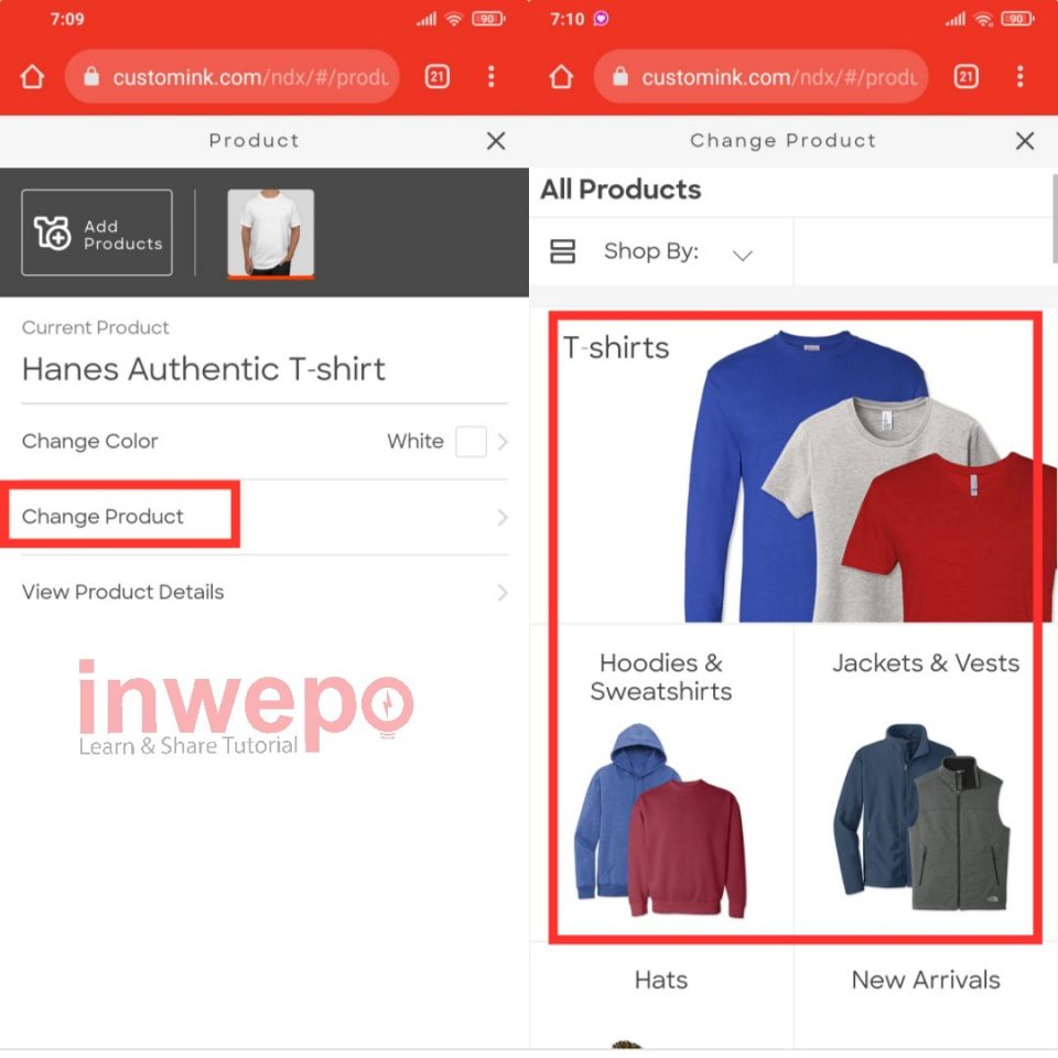 2. Pilih menu Change Product, lalu kamu bisa memilih beberapa model seperti hoddie, topi dan lain – lain.