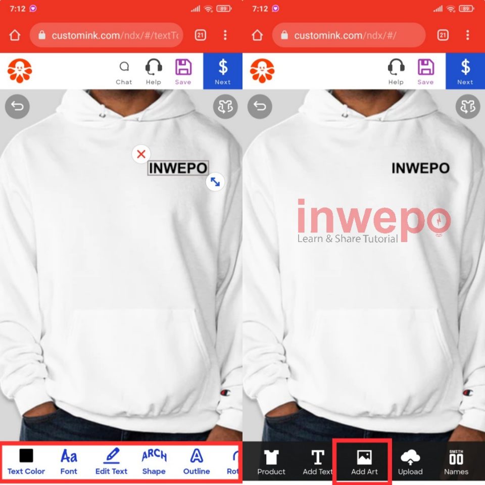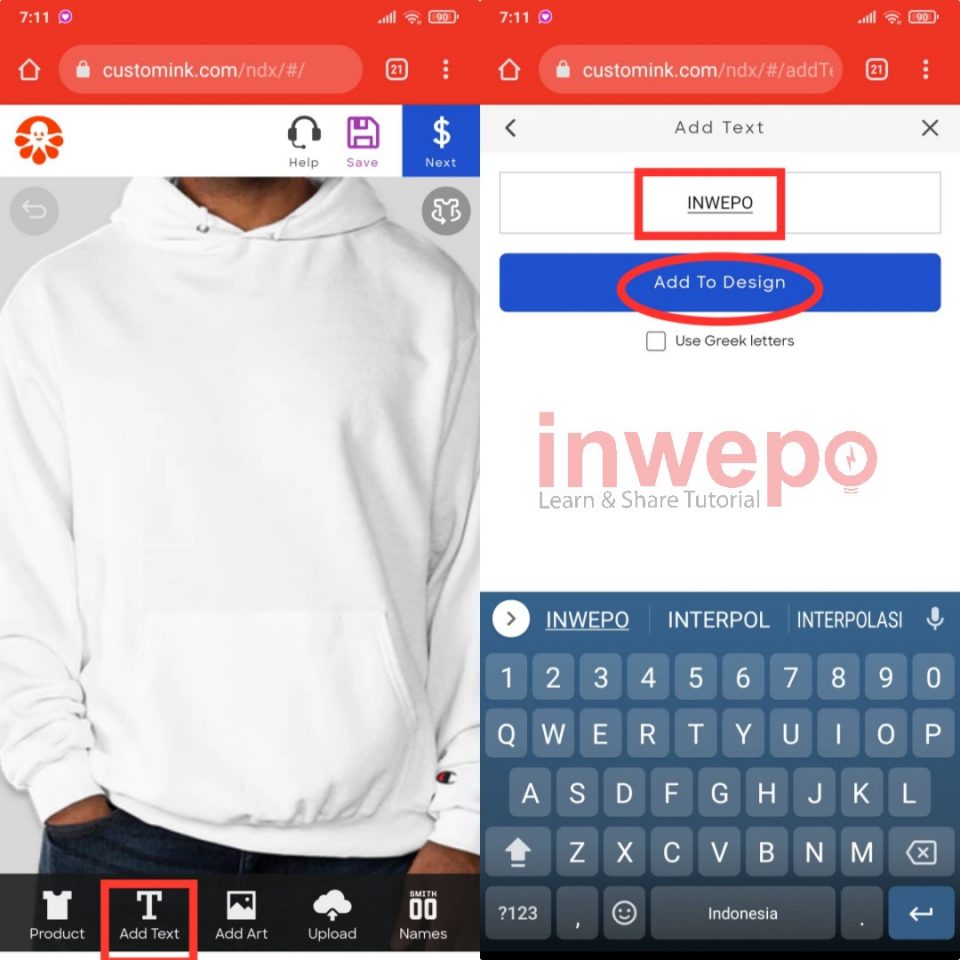 4. Kamu bisa menggunakan menu teks di bagian bawah untuk mengganti model dan juga warna teks yang kamu gunakan. Kamu juga bisa menambahkan art atau gambar lain dengan tap menu Add Art.