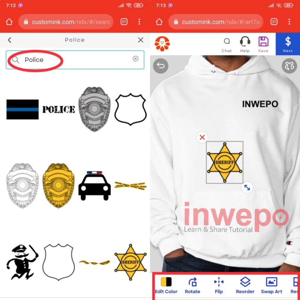 5. Kamu bisa mengetikkan art atau gambar yang kamu cari pada kolom pencarian. Selanjutnya atur warna, posisi dan lainnya menggunakan menu yang berada di bagian bawah.