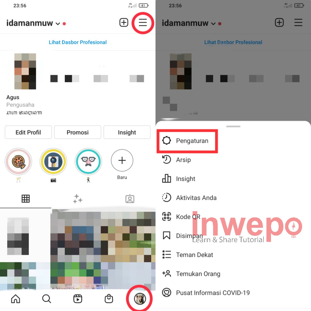 1. Buka menu profil pada Instagram kamu kemudian tap menu burger di pojok kanan atas, lalu tap menu pengaturan.