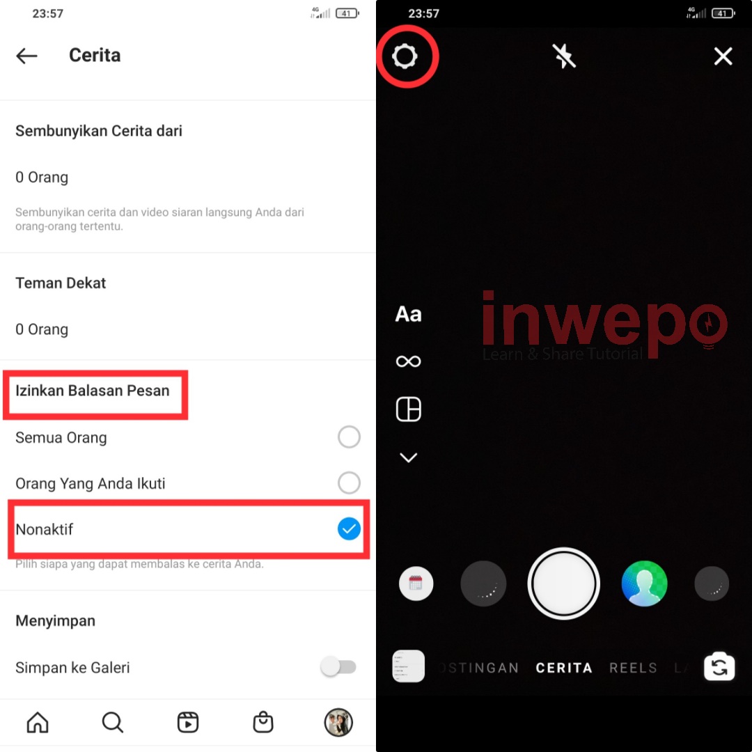 3. Nah, dibagian menu Izinkan balasan pesan, pilih nonaktif. Selain menggunakan cara lewat pengaturan, kamu juga bisa langsung menyettingnya pada menu pembuatan story dengan tap icon gear.