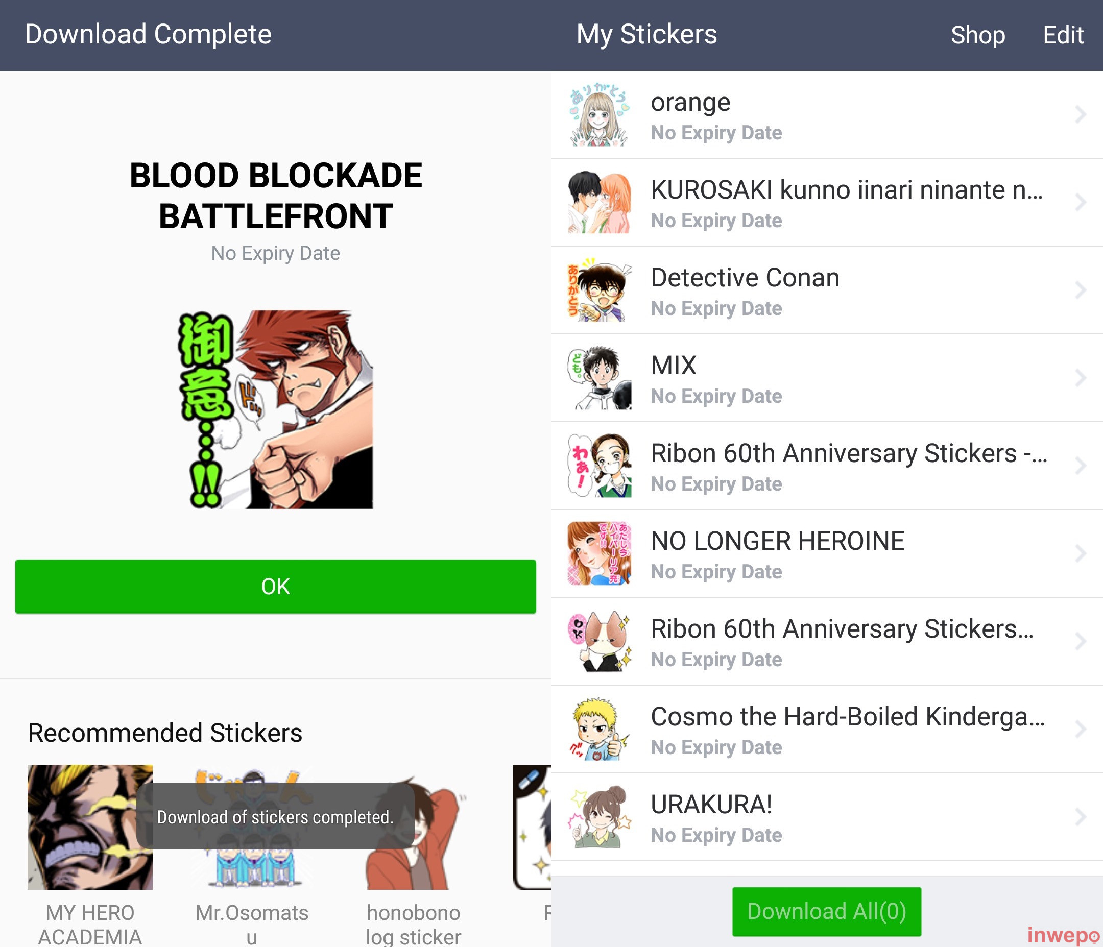 Untuk dapat mengunduh stiker LINE Manga di bawah ini harus menggunakan VPN Jepang, menghapus nomor telepon dan mengaktifkan fitur enable download button.