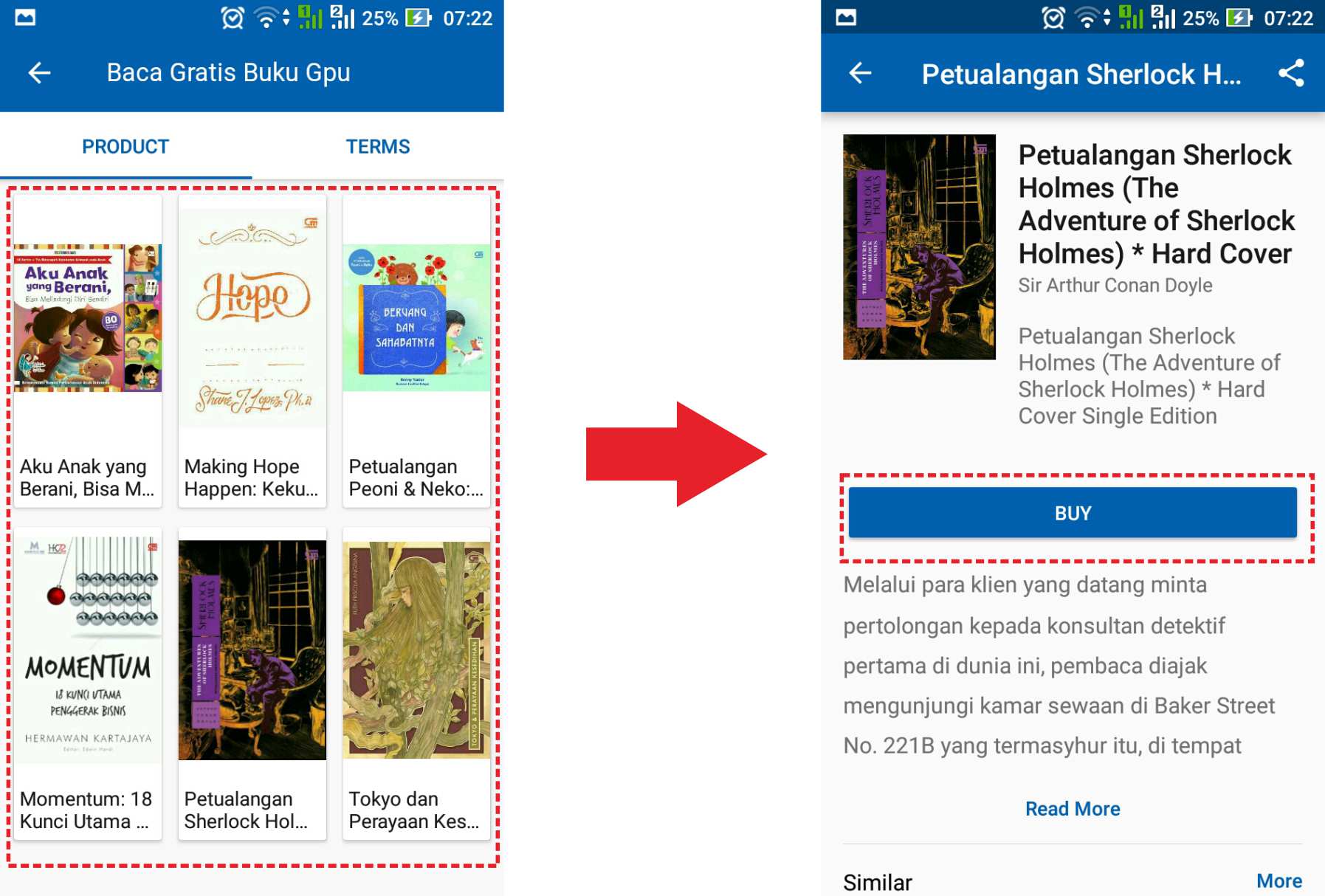 2. Maka akan muncul produk e-book yang saat ini gratis. Pilih buku yang diinginkan, kemudian pilih buy.