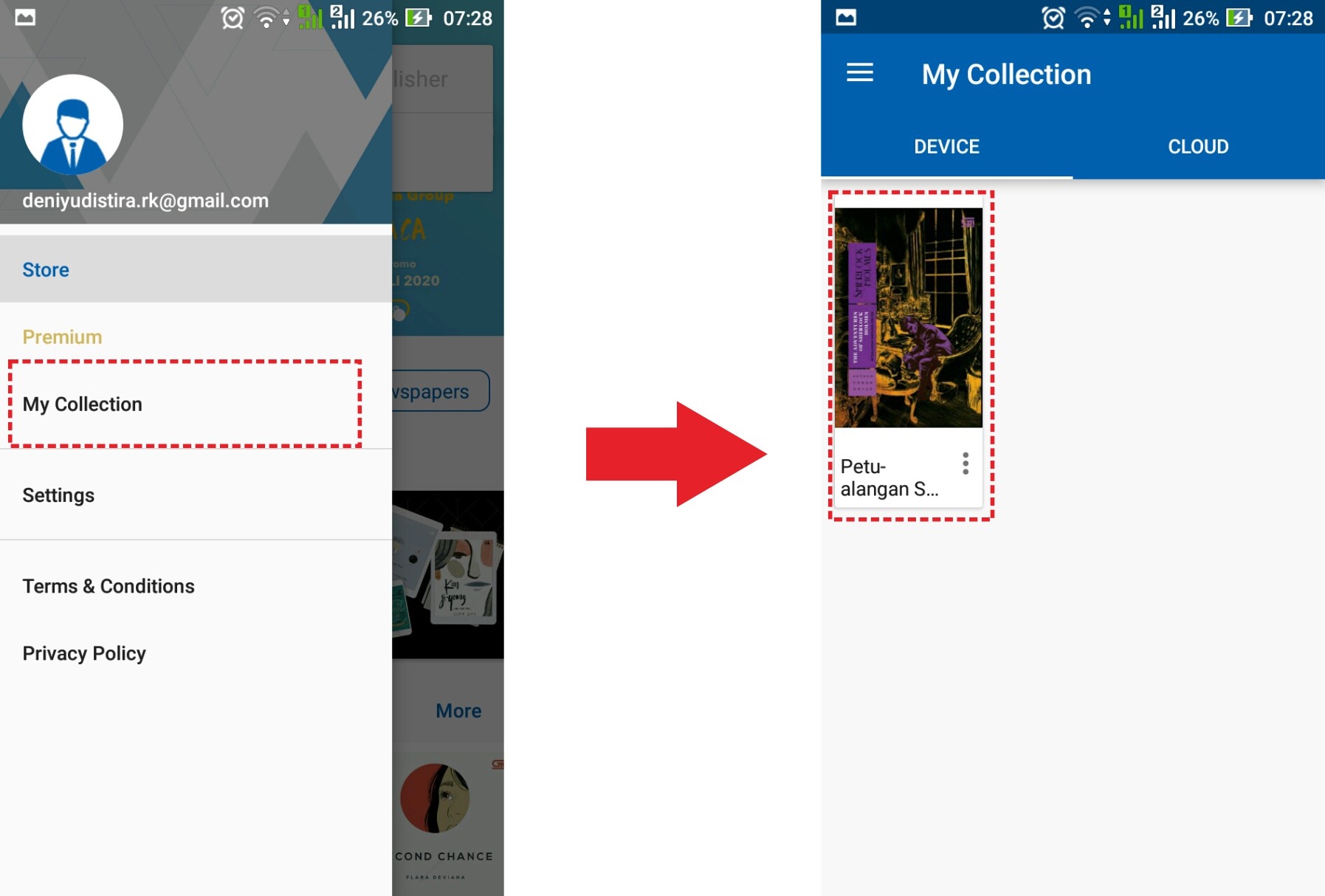 5. Langkah selanjutnya, pilih my collection. Maka buku yang kita unduh tadi akan terlihat pada menu koleksi.