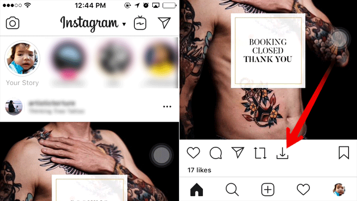 4. Setelah itu buka aplikasi Instagram – cari foto atau video yang ingin kamu unduh atau download – Tap ikon tanda panah ke bawah untuk mendownload foto atau video.