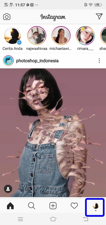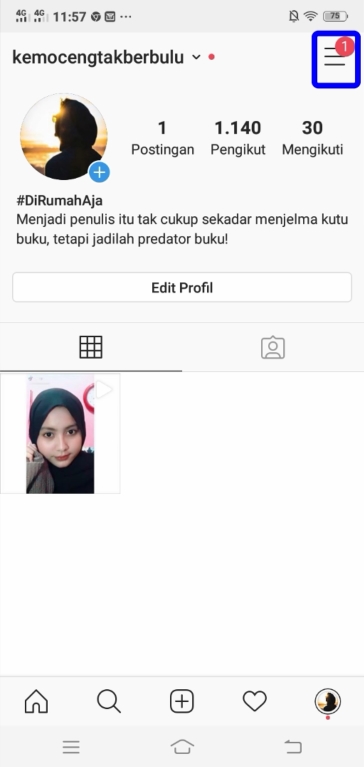 1. Buka aplikasi Instagram, pastikan sudah Login menggunakan akun Instagram kamu. Jika sudah, buka menu Profile.