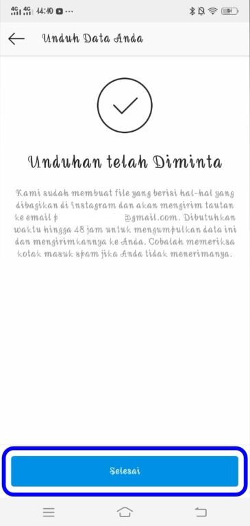 Nah, kamu tinggal menunggu semua foto dan video yang akan dikirim pihak Instagram ke alamat email yang kamu masukan pada halaman Unduhan Data Anda. Pihak Instagram tidak hanya mengirim semua foto dan video, bahkan komentar dan informasi akun lainnya.