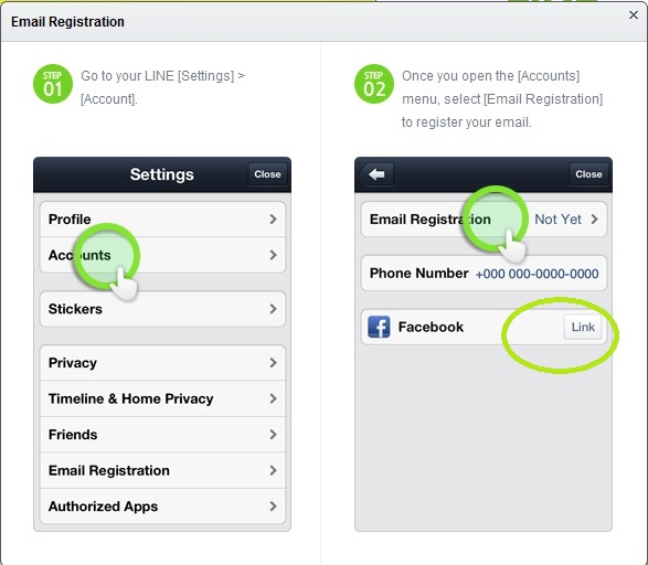 Daftarkan email dan akun facebook. Masuk ke LINE Settings, pilih Accounts.