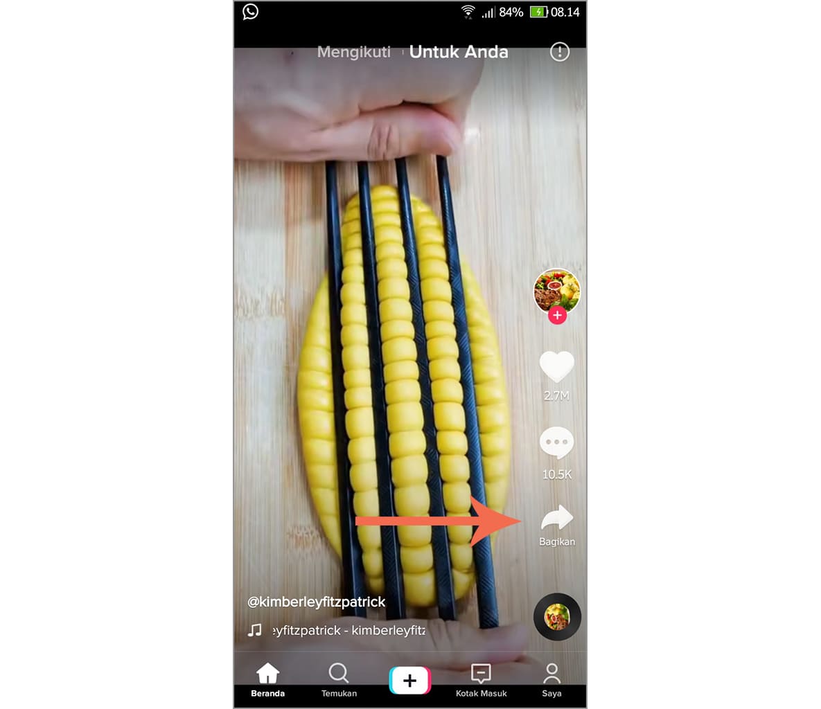 3. Pada bagian kanan bawah video TikTok, silakan ketuk bagikan.