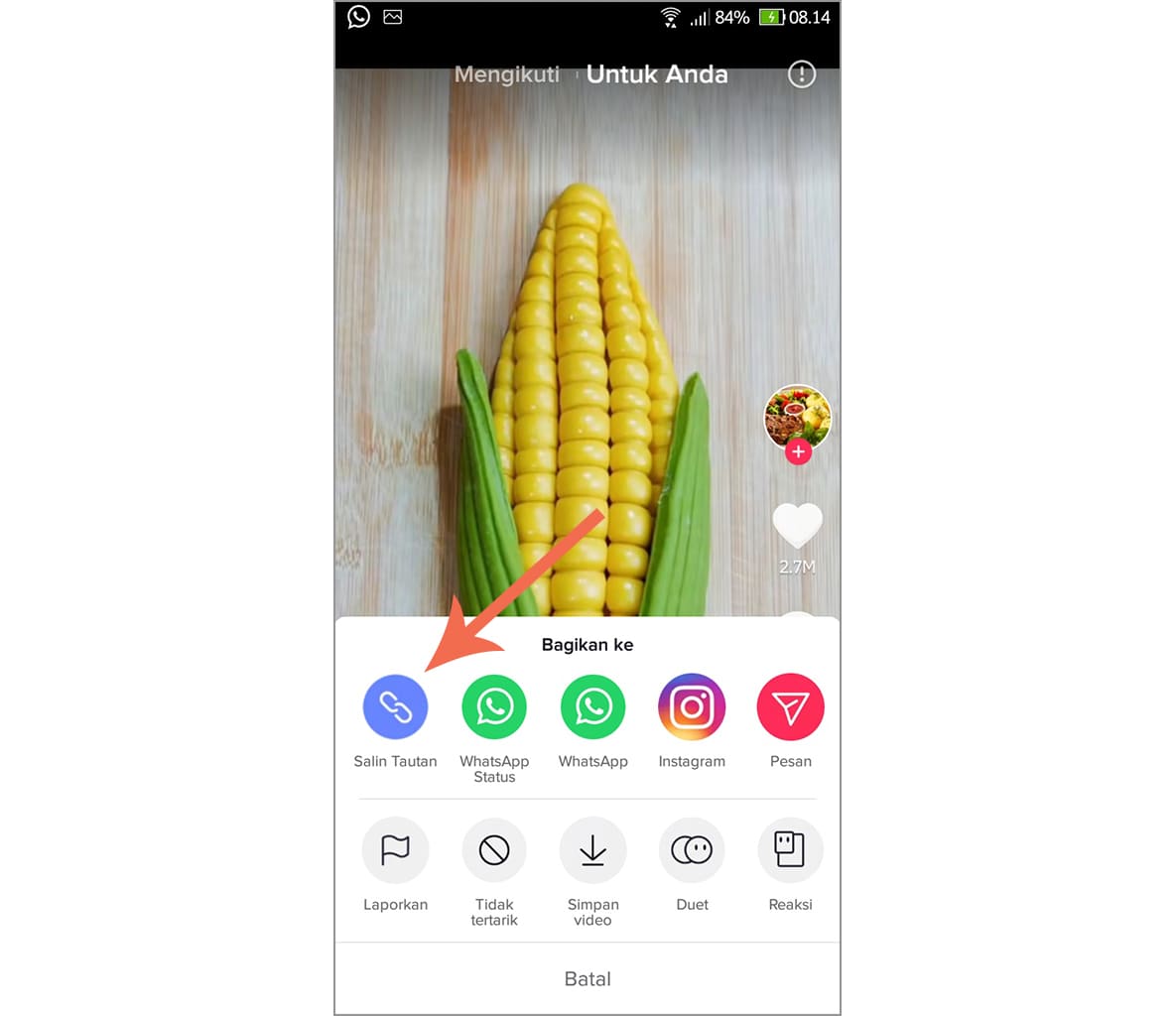 4. Akan muncul menu baru, silakan kamu pilih salin tautan dengan mengetuknya.
