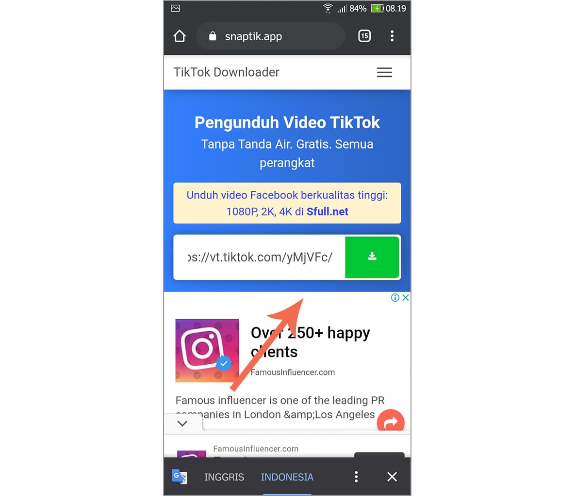 5. Buka Google Chrome di smartphone kamu, kemudian ketikkan snaptik.app , setelah itu tempelkan tautan di kolom yang sudah disediakan, dan ketuk ikon download.