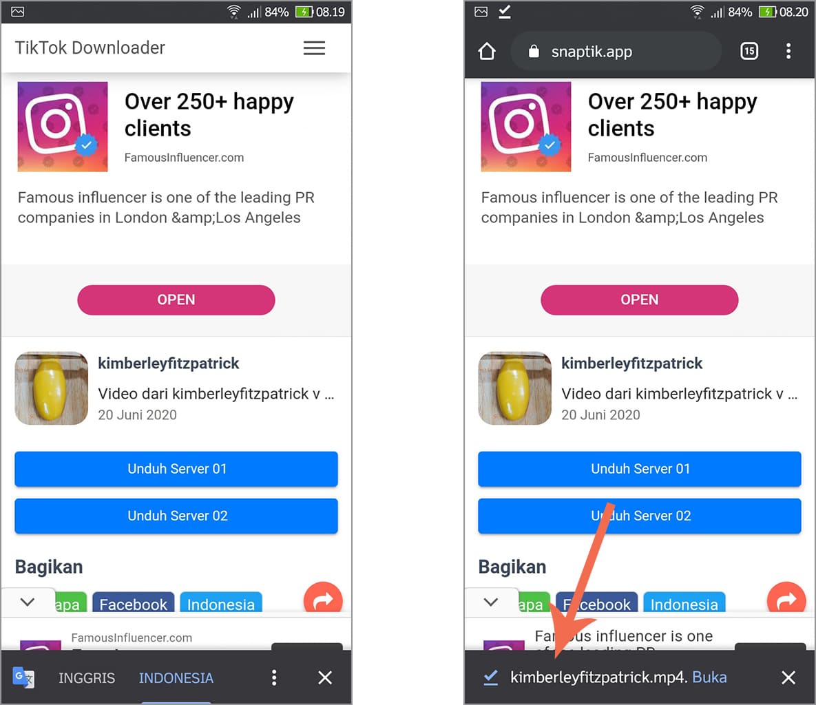 6. Pilih unduh server 01, dan video pun berhasil diunduh.