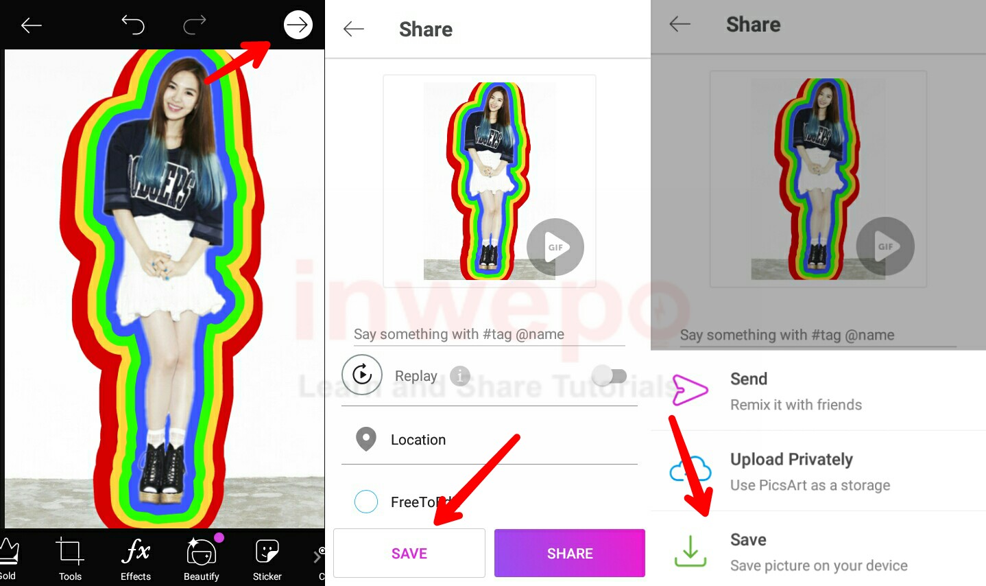 Pilih tanda Panah ‘➡’ – Save – Save Picture on Your Device.
