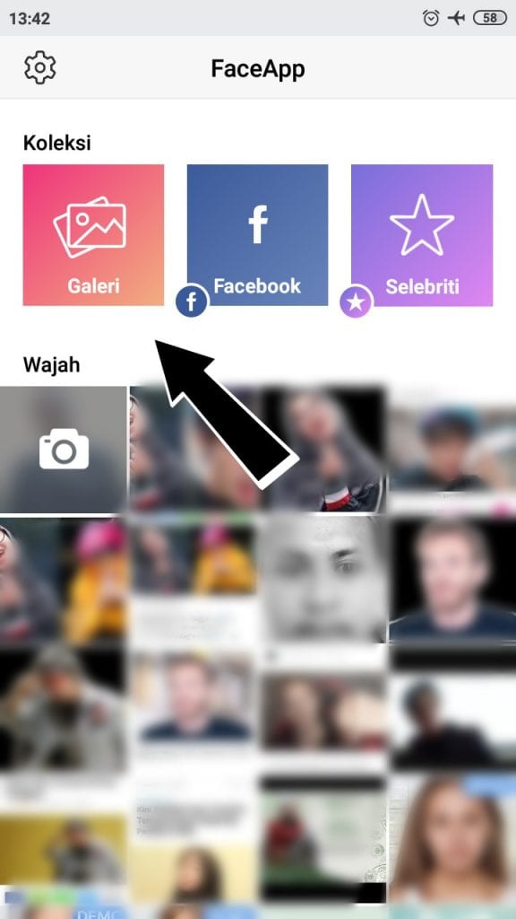 2. Selanjutnya, otomatis kita dialihkan ke halaman pertama FaceApp tersebut, maka langsung saja kamu pilih foto yang ingin kamu edit dengan klik Galeri.