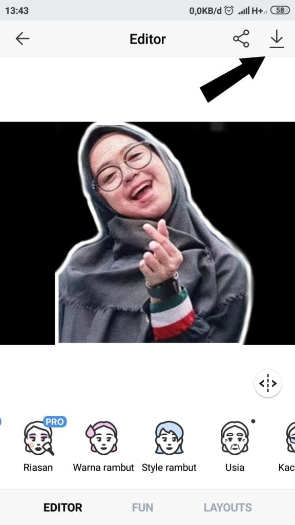5. Jika sudah, langsung saja kamu save dengan klik icon unduh di atas pojok kanan.