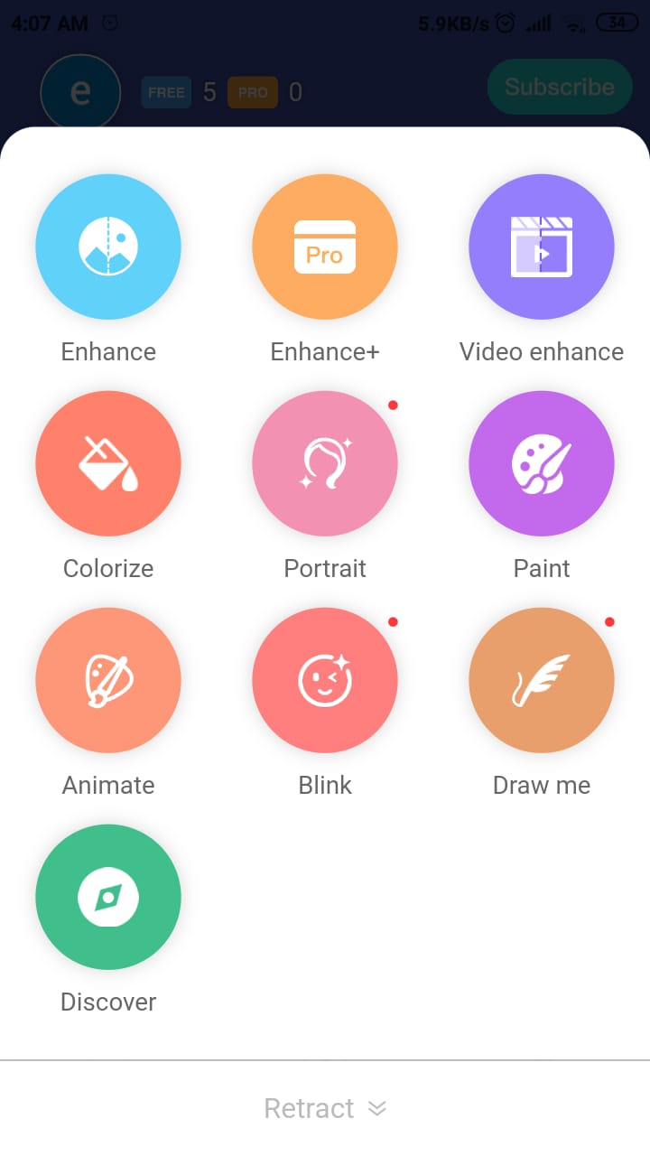 5. Disini kamu akan melihat banyak fitur dari Remini, tapi kamu pilih ” Menu More ” Lalu pilih fitur paint