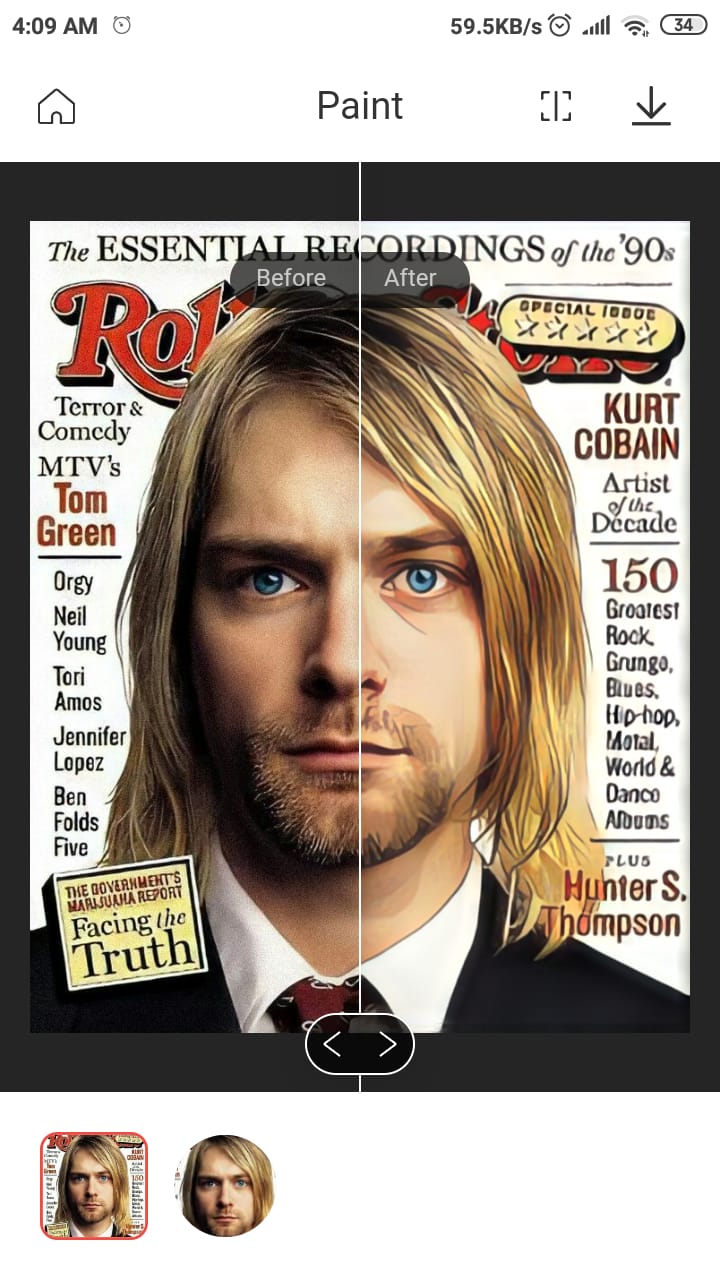 9. Lalu Taraaa!!! foto kamu berhasil kamu ubah/edit, disini Remini akan memperlihatkan hasil sesudah dan sebelum di edit