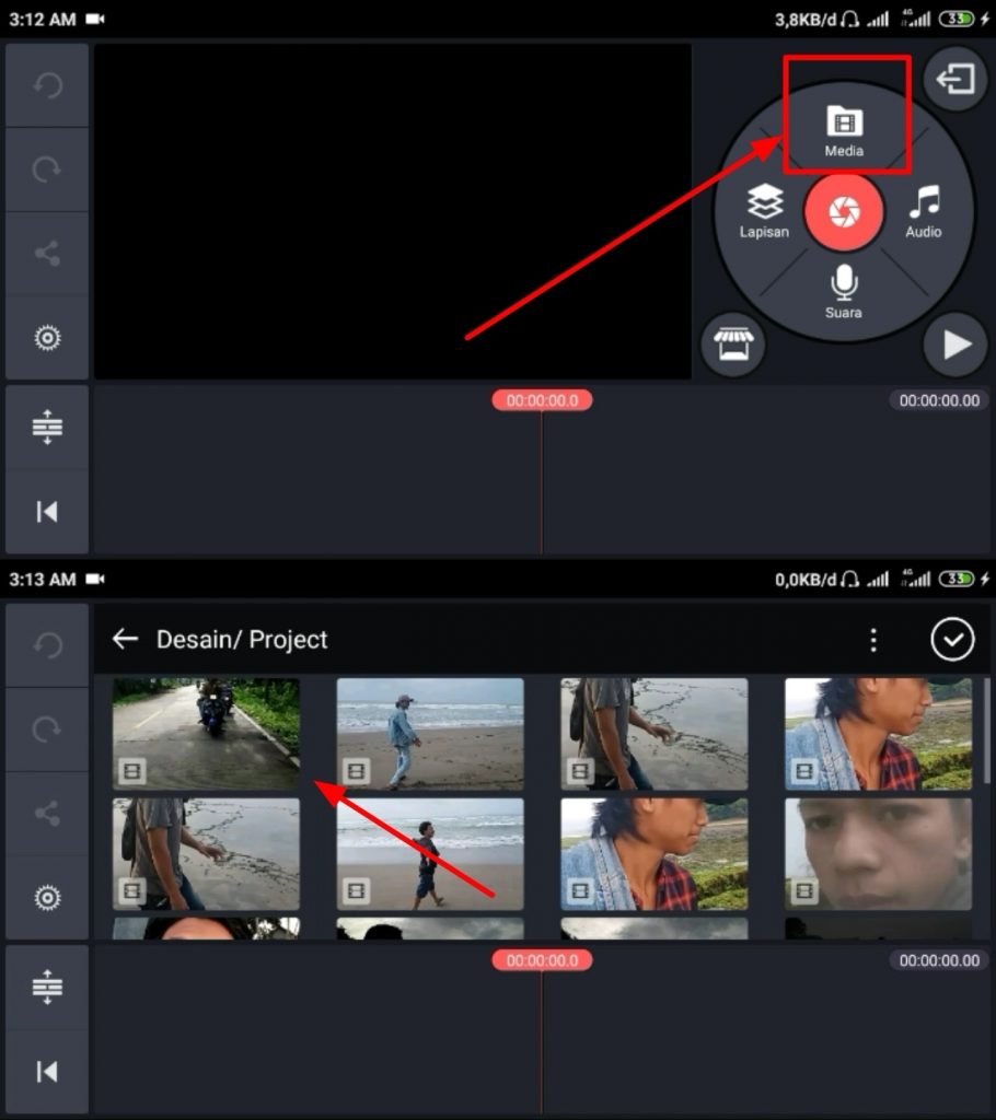 3. Tekan menu media dan cari file video yang akan kamu ektrak dari media galery.
