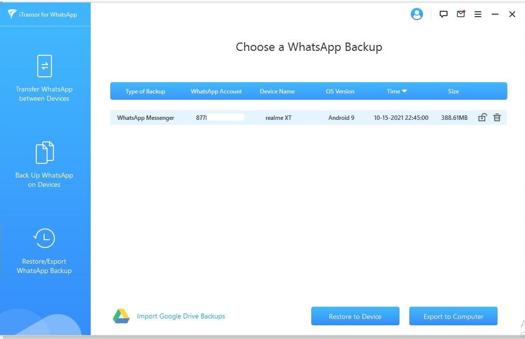Untuk dapat melakukan backup chat WhatsApp ke PC atau backup WhatsApp dari Google Drive ke PC kamu harus menggunakan aplikasi tambahan pihak ke-3, salah satunya aplikasi yang bernama iTransor for WhatsApp. Aplikasi ini memudahkan kita untuk memindahkan atau membackup data chat WhatsApp ke HP lainnya atau ke PC.