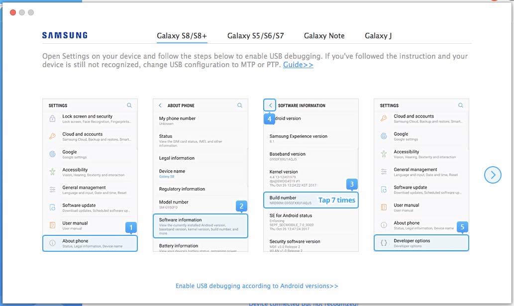 Jika HP kamu belum pernah terhubung ke komputer PC sebelumnya, silakan aktifkan terlebih dahulu USB debugging, caranya dengan mengaktifkan menu developer option terlebih dahulu. Silakan ikut langkah sepert gambar di bawah ini. pada software iTransor akan membantu kamu untuk mengaktifkan USB debugging sesuai dengan Merk HP kamu.
