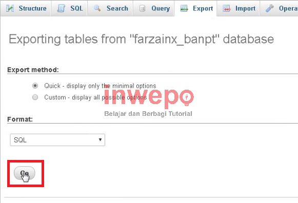 Catatan: Selain dalam format .sql kamu bisa mencoba format lain, namun rata rata penggunaan berkas backup database selalu menggunakan format .sql