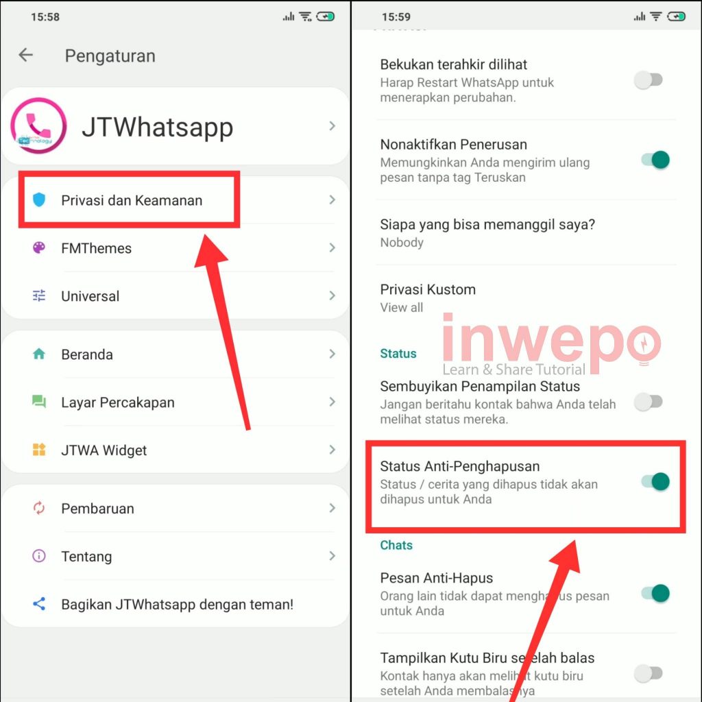 Demikian tutorial Cara Filter Panggilan Masuk dan Status Anti Hapus WhatsApp. Semoga bermanfaat.