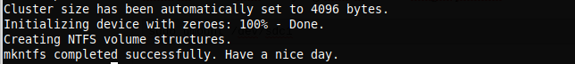 sudo mkfs.ntfs /dev/sdc1