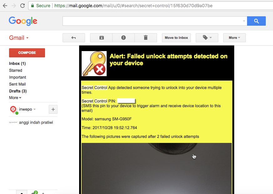 .5 Jika sudah semua silakan menguji coba aplikasi Secret Control dengan melakukan kesalahan lebih 2-3x memasukan kunci pola di smartphone Android kamu. Tunggu beberapa menit kamu akan menerima email yang berisi wajah si pencuri dan alamat lokasi smartphone kamu berada.