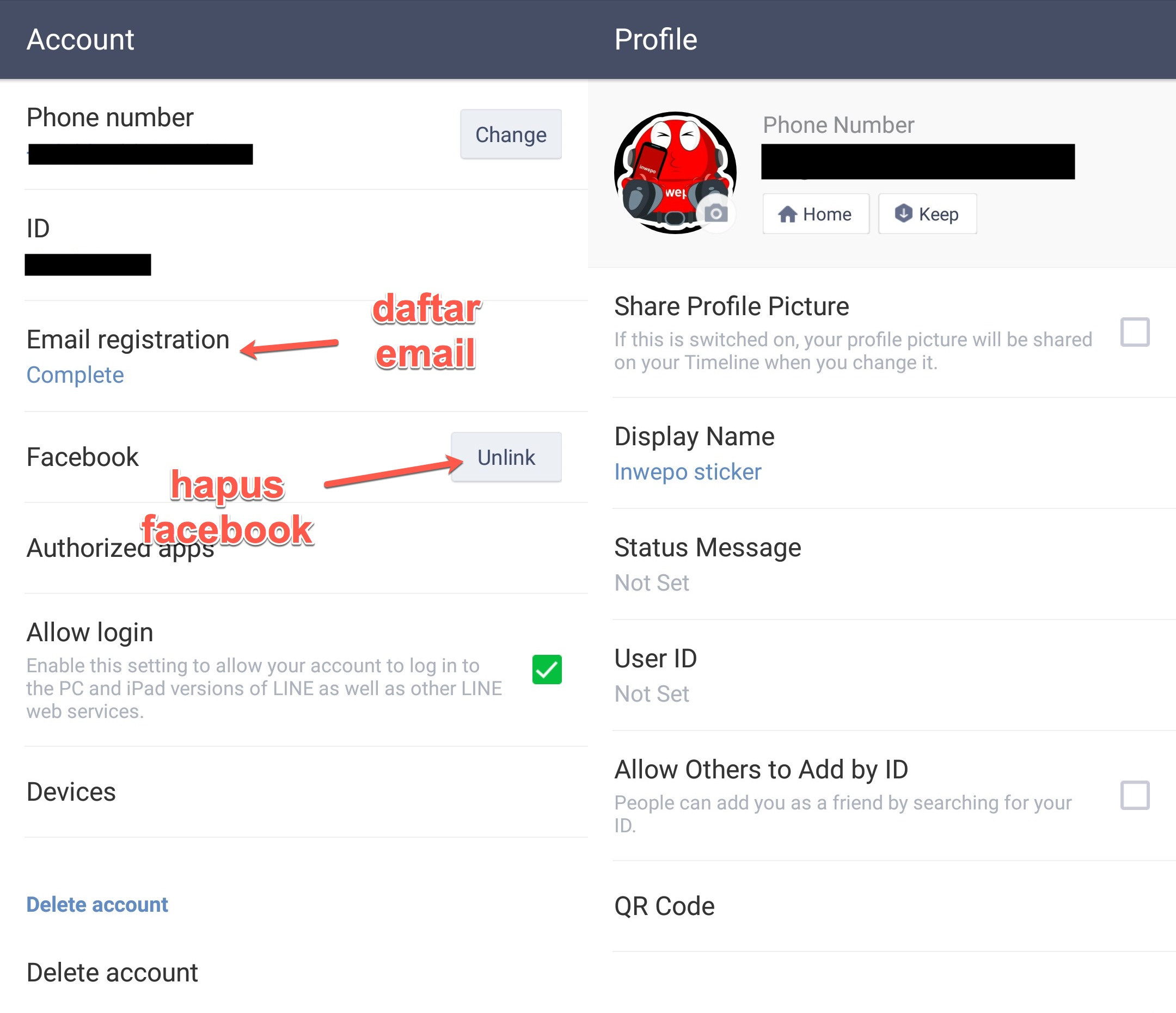 2. Untuk yang sudah mengaitkan akun LINE ke Facebook silakan di unlink/remove (jangan mengaitkan akun LINE kamu dengan akun Facebook).