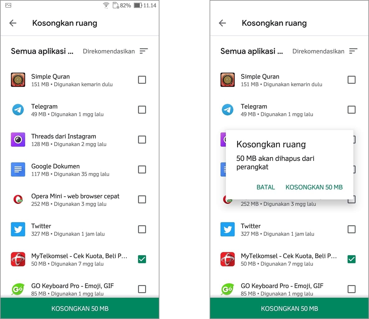 4. Silakan centang aplikasi yang ingin dihapus, kemudian ketuk kosongkan.