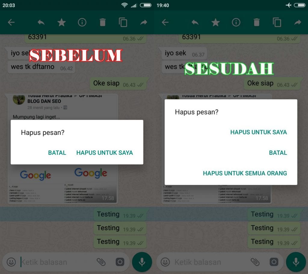 Nah, tentunya apabila penghapusan pesan tersebut tidak di batasi waktu pasti akan sangat membantu kita semua dalam meminimalisir kesalahan dalam chat, misalnya saja salah kirim atau tak sengaja terkirim.
