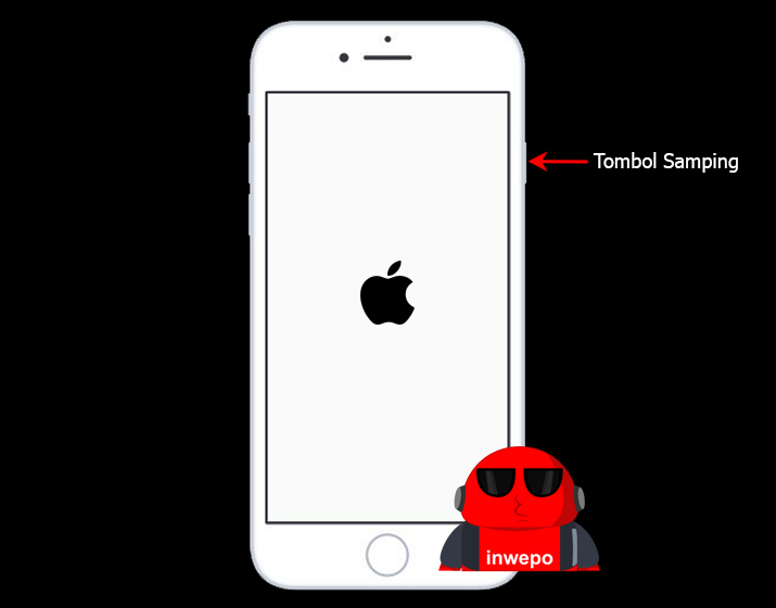 2. Tekan dan tahan tombol samping, sampai perangkat kamu restart dan logo Apple muncul.
