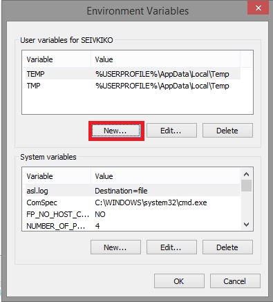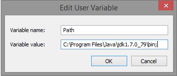 Kemudian pilih New pada User Variables, isikan Variable name dengan “PATH” dan Variable value dengan direktori tempat penyimpanan intalasi JDK sampai dengan folder bin seperti di bawah ini :