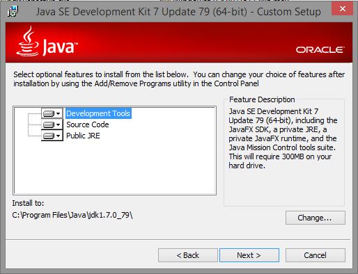 Pemilihan instalasi komponen JDK seperti JRE, kemudian pilih tempat penyimpanan instalasi, kemudian next.