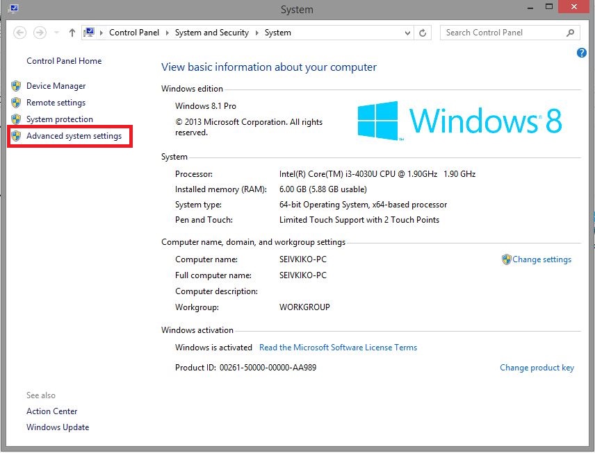 Pada My Computer klik kanan > Properties. Kemudian pilh Advanced System settings.
