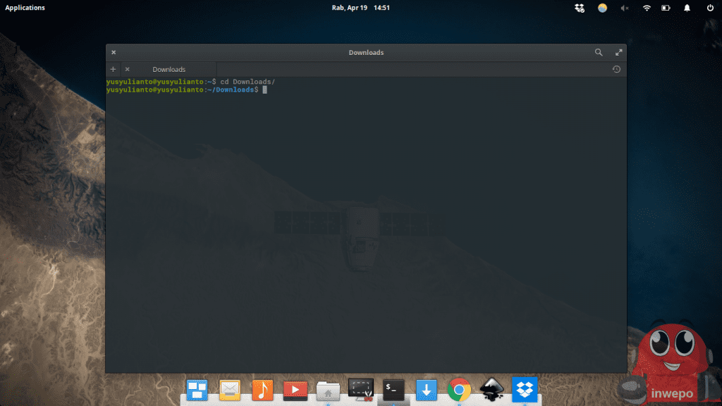 2. Buka terminal, lalu navigasikan ke folder dimana kamu menyimpan mentahan aplikasi tersebut. Dalam tutorial kali ini, saya menyimpan mentahan aplikasi Birdie di folder Downloads, maka saya akan menggunakan perintah “cd Downloads”.