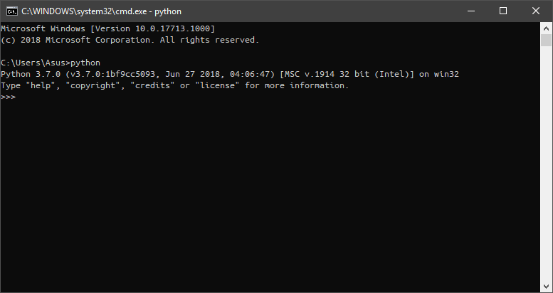 Jika sudah terinstall, maka akan muncul informasi serta compiler dari Python.