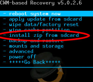 3. Setelah masuk ke Recovery, Pilih ‘Install Zip from SD Card‘.