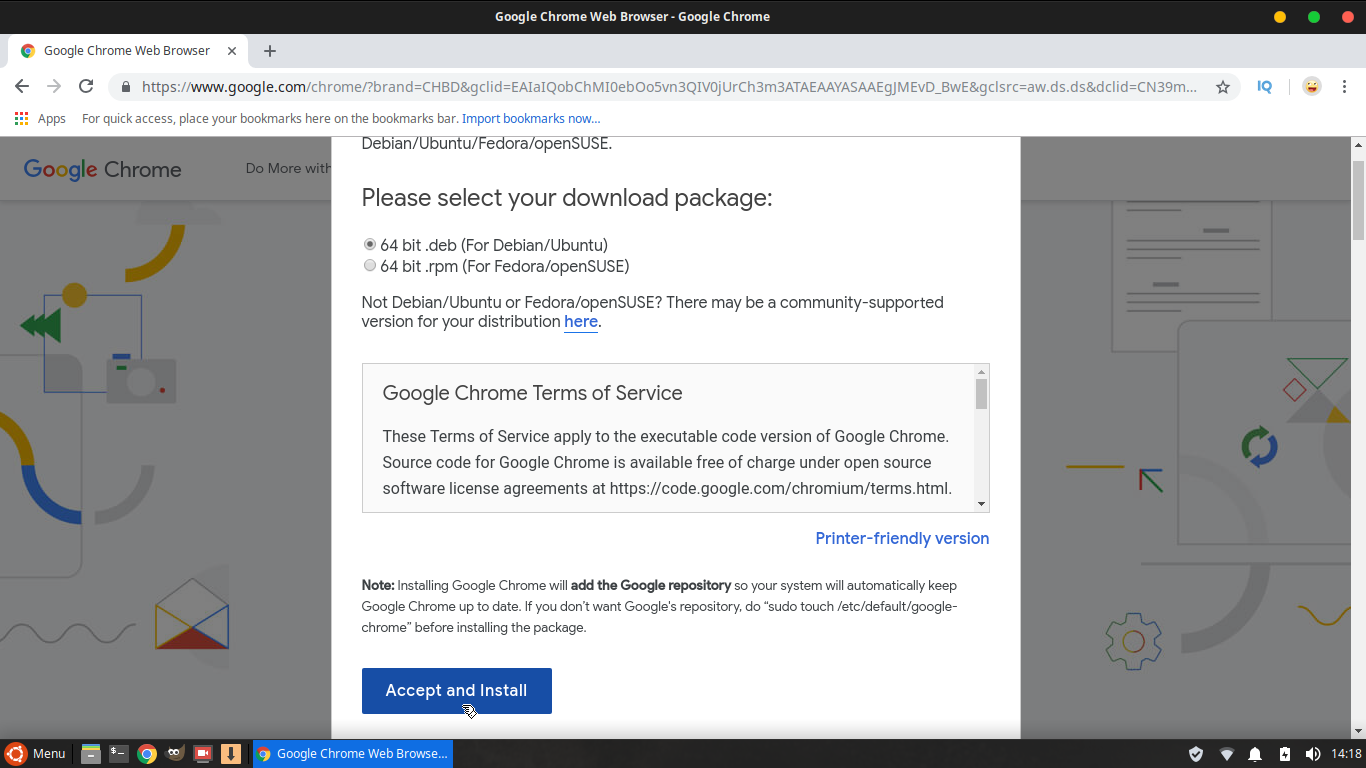 4. Setelah itu, pilih package yang berformat .deb dan jika sudah, klik Accept and Install.