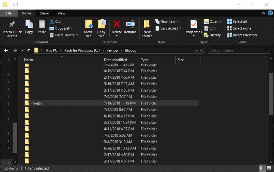 5. Jika sudah, nantinya kita akan menemukan folder baru pada direktori file server dengan nama sesuai dengan nama proyek yang telah kita tentukan sebelumnya.