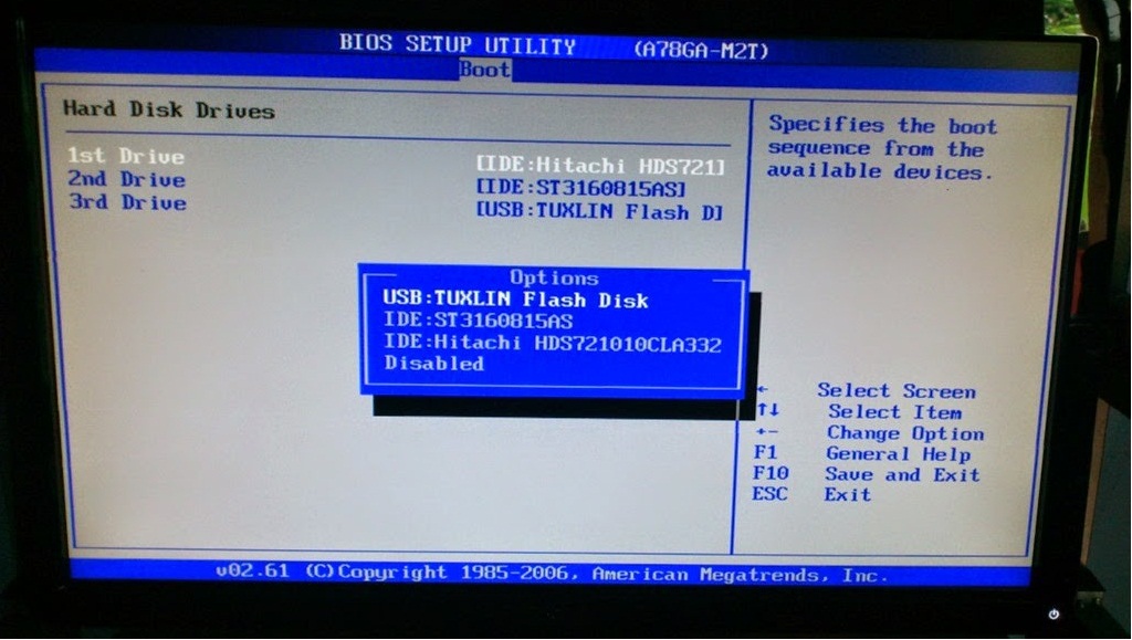 5. Tekan F10 untuk menyimpan pengaturan tersebut.