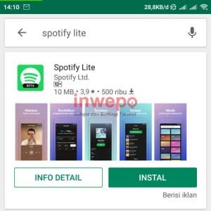 1. Download dan install aplikasi Spotify Lite di Google Play Store.