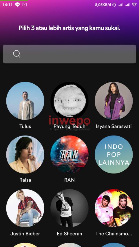5. Jika sudah masuk, kamu akan melihat tampilan seperti di bawah ini, silahkan kamu pilih minimal 3 penyanyi pilihan kamu dan jika sudah kamu tap selesai.