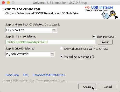 6. Lalu centang pilihan We Will Fat32 Format, jika sudah selesai Klik Create.