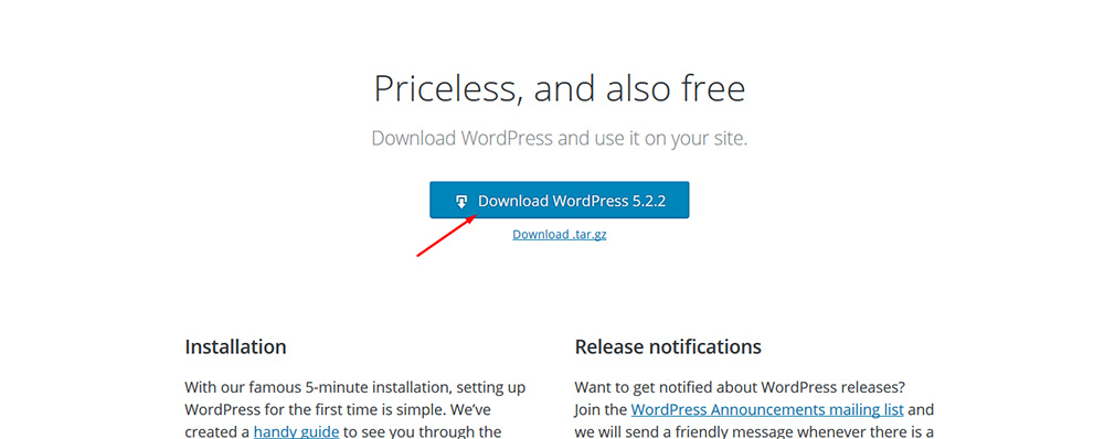 Dan download file Wordpress nya dan versi Wordpress saat ini v5.2.2